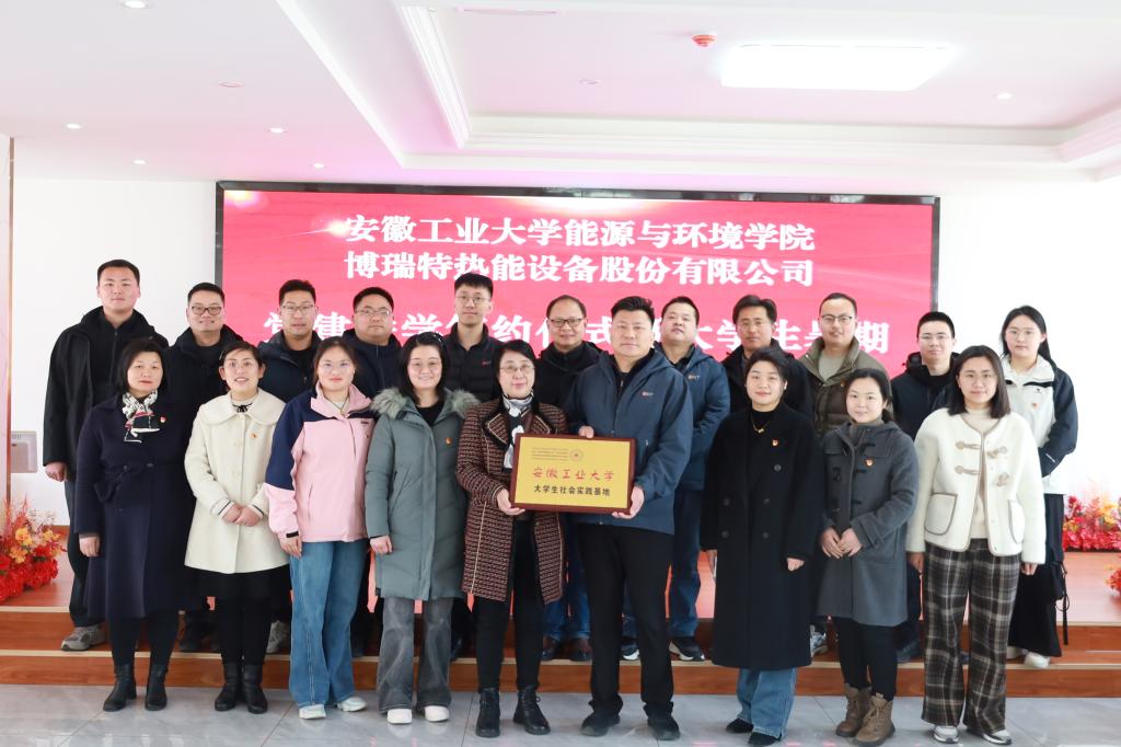 會(huì)上,顧明言代表安徽工業(yè)大學(xué)為公司進(jìn)行"大學(xué)生社會(huì)實(shí)踐基地"授牌,能環(huán)學(xué)院黨委書記謝文平與公司黨支部共同簽署黨建共建協(xié)議書,雙方與會(huì)人員合影留念。